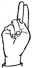 На ћирилици написано ДУШАН ГАГОВИЋ састоји се из 12 слова [?]. Исписано ћириличном једноручном азбуком за глувонеме: